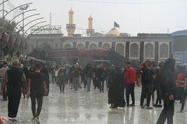 walking under the rain in " Bain - ul - Haramain "