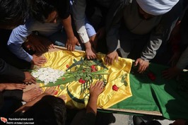 The pure body of the Fatemiun battalion shrine defender martyr "Morad Ali Khavari" held in Pishva on Thursday.